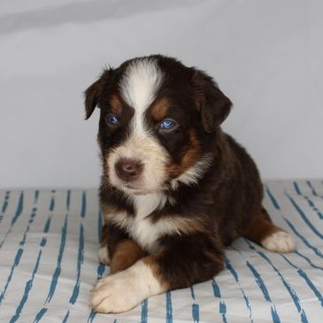 Alina will bebred to Joker for a litter in Spring 2026 for Full Australian Shepherds. Expected adult weight about 45-55 lbs. Both parents are genetically tested through Embark. Sire is also tested through OFA for hips, knees, elbows, cardiac, and thyroid. Dam additionally is out of both parents that have passed their OFA hips, knees, elbows, cardiac, and thyroid. We are expecting a litter of blue merle, red merle, red tri, and black tri. Dark copper points as well. Blue eyes are also expected! We are retaining first choice merle boy and first choice merle girl. Accepting three more depsoits before whelping. Prices will range $500-1500.